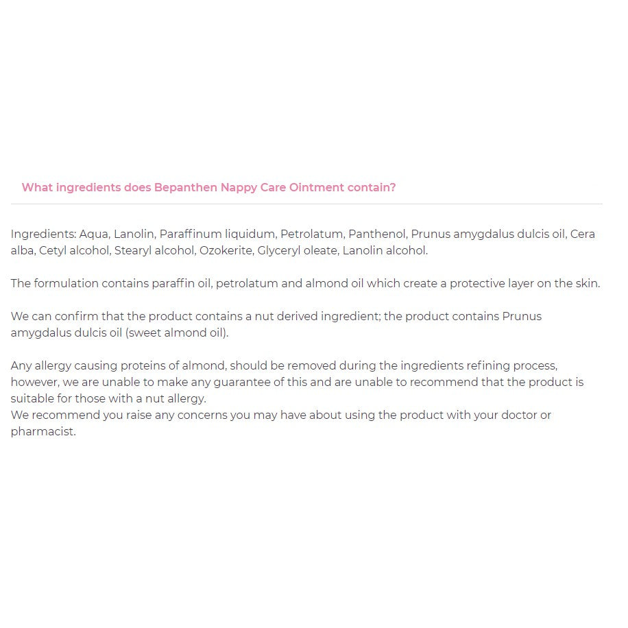 Bepanthen contains Provitamin B5 which gently aids natural recovery of sensitive skin, while keeping it soft, smooth and moisturised. Bepanthen's water-in-oil formulation also works by helping to seal in the skin's natural moisture, providing optimal conditions to allow gentle skin recovery without drying out your baby's delicate skin.