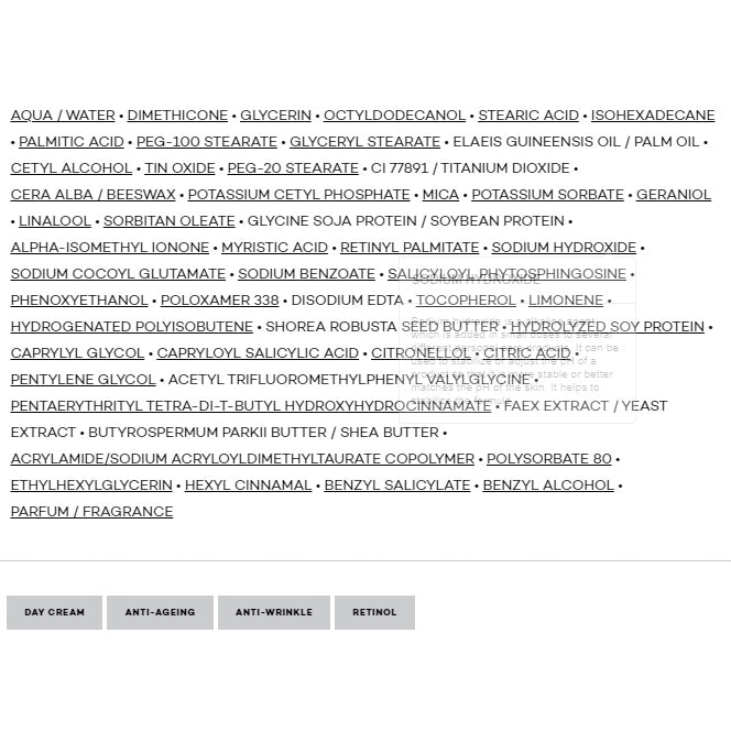 Advanced pro-retinol is a powerful dermatologist-inspired anti-wrinkle ingredient, which helps to smooth the skin's surface. Fibrelastyl is a forming complex, which helps to reinforce skin elasticity.