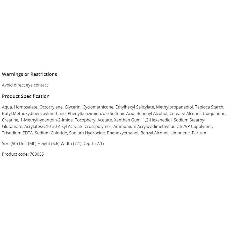 • Skin's natural anti-age defence with Q10, which is 100% identical to the Q10 found in your skin