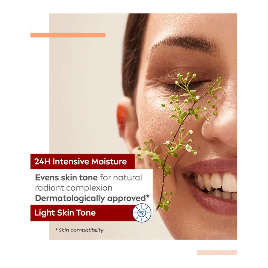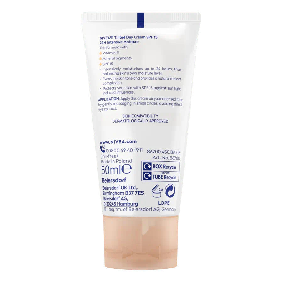 Achieve an even skin tone and a naturally radiant complexion with NIVEA Tinted Day Cream. Enriched with Vitamin E and Mineral Pigments, this lightweight formula provides intense moisture for up to 24 hours, helping to balance your skin's natural hydration levels. With SPF 15, it also shields your skin from the harmful effects of UV rays.