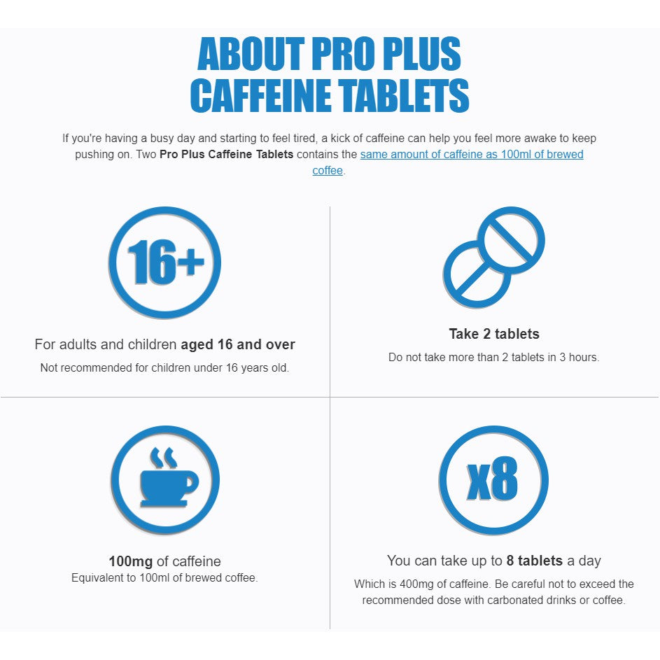 Pro Plus Caffeine Tablets are a licensed medicine for the relief of temporary tiredness. Always read the label.
