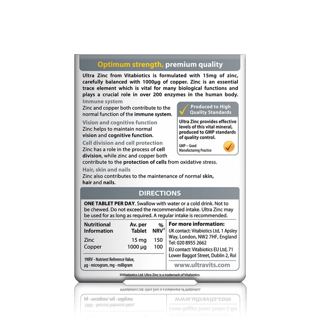 Ultra Zinc - 15mg with Copper - 60 Tablets - Certified from Vitabiotics UK