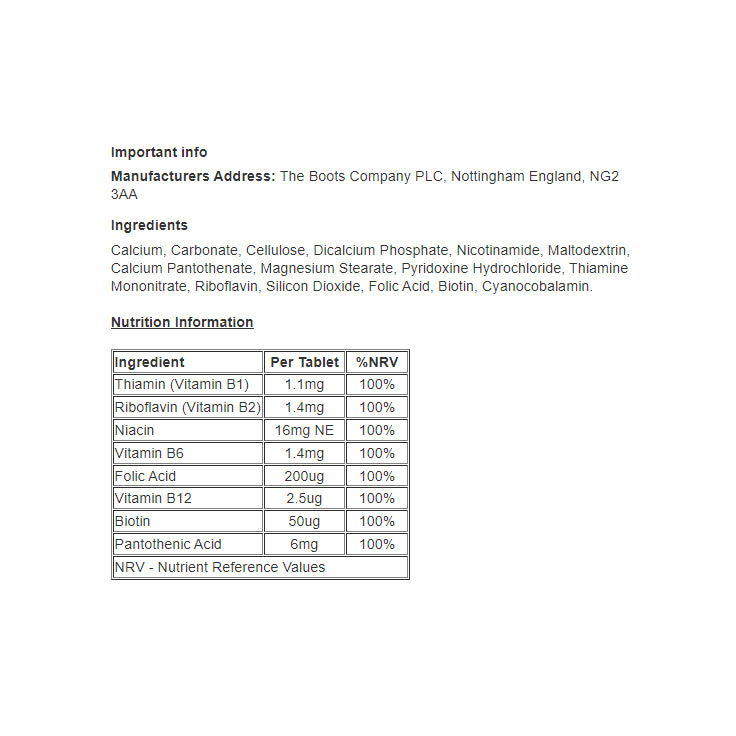 Vitamin B Complex - 90 Tablets - Certified from Boots UK