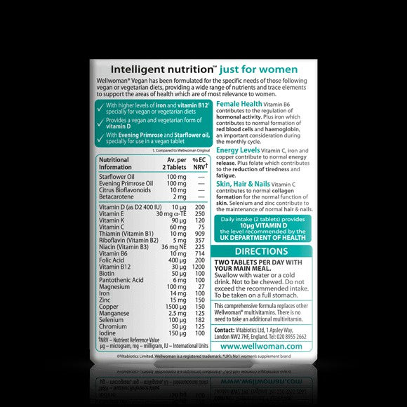 Wellwoman Vegan (60 tablets) - Ideal for vegetarians & vegans - from Vitabiotics UK